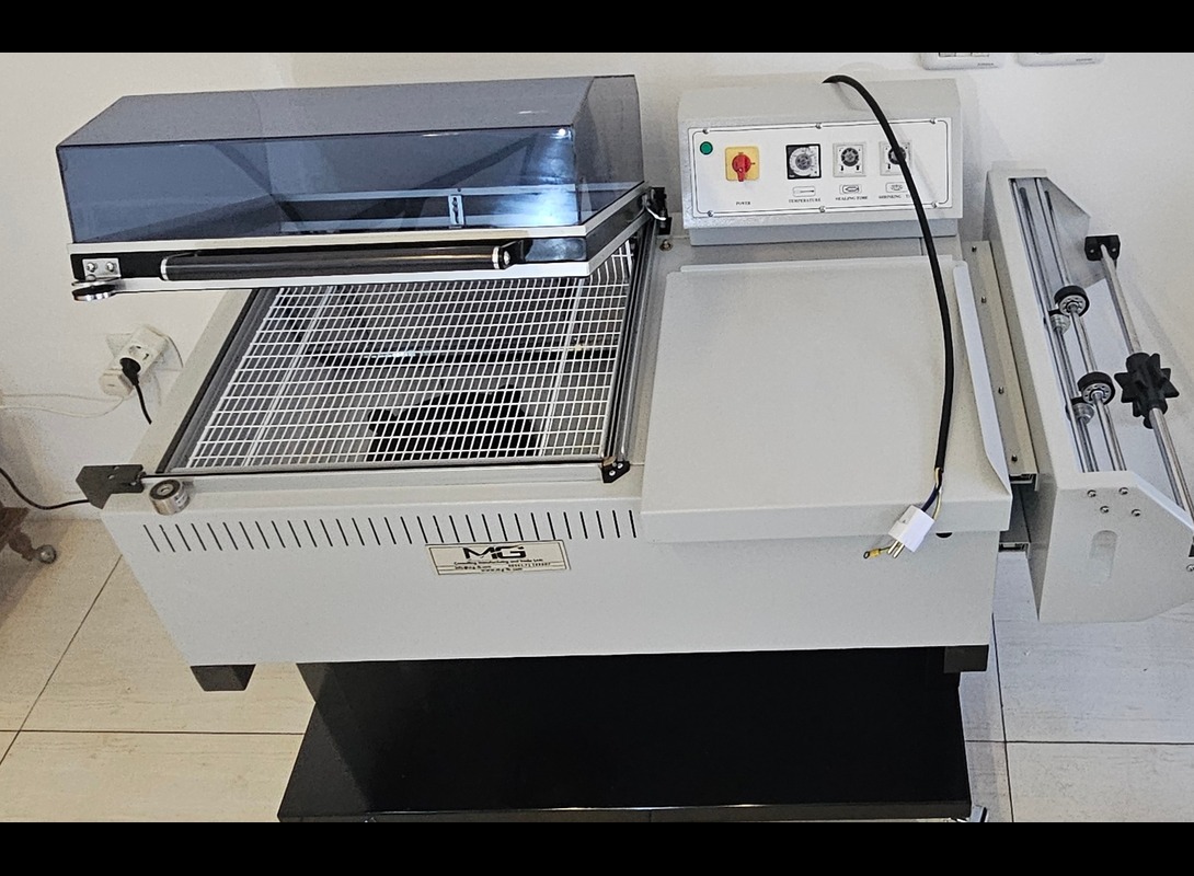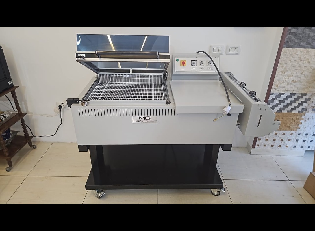 The shrink machine is used to wrap products such as sweets, food, and beverages by heating the film to securely adhere it around the product.